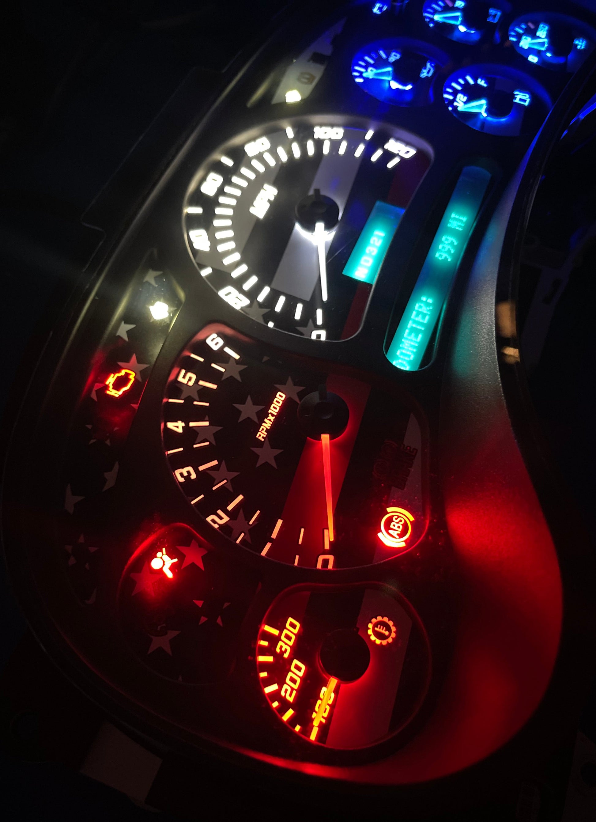 2003-2007 AMERICAN FLAG 7 GLOW NEEDLES Gmc Chevrolet OEM Rebuilt Refurbished Instrument Gauge Cluster Cadillac Escalade , Silverado, Sierra, Tahoe, Denali Suburban, Avalanche, Yukon , W/ Trans Temp (Gold Cadillac Escalade Bezel W/Blue Signals) Speedometer